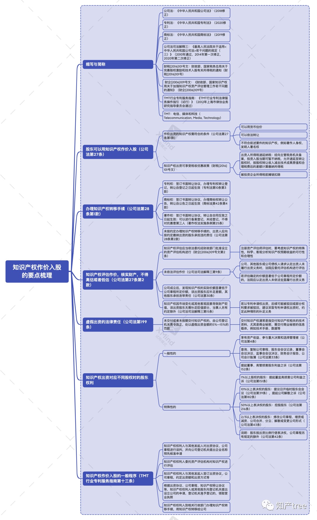 然而,知識產權出資,不同于現金出資,仍然比較復雜。在此梳理相關要點,制作思維導圖如下。